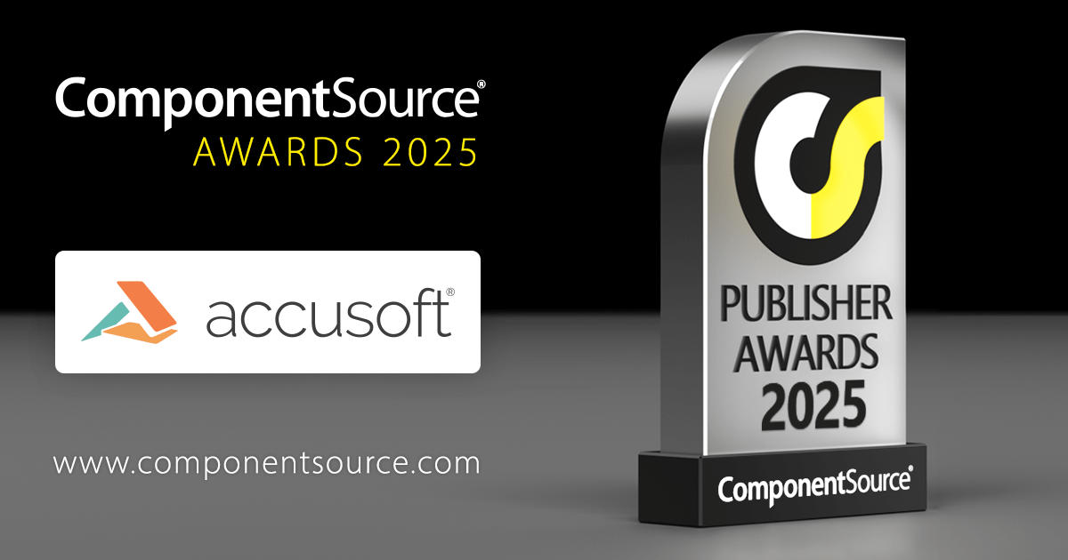 Congratulations to Accusoft on winning a Top 50 Publisher Award in this year's ComponentSource Awards. We're pleased to once again recognize Accusoft's ongoing excellence in developing document solutions.