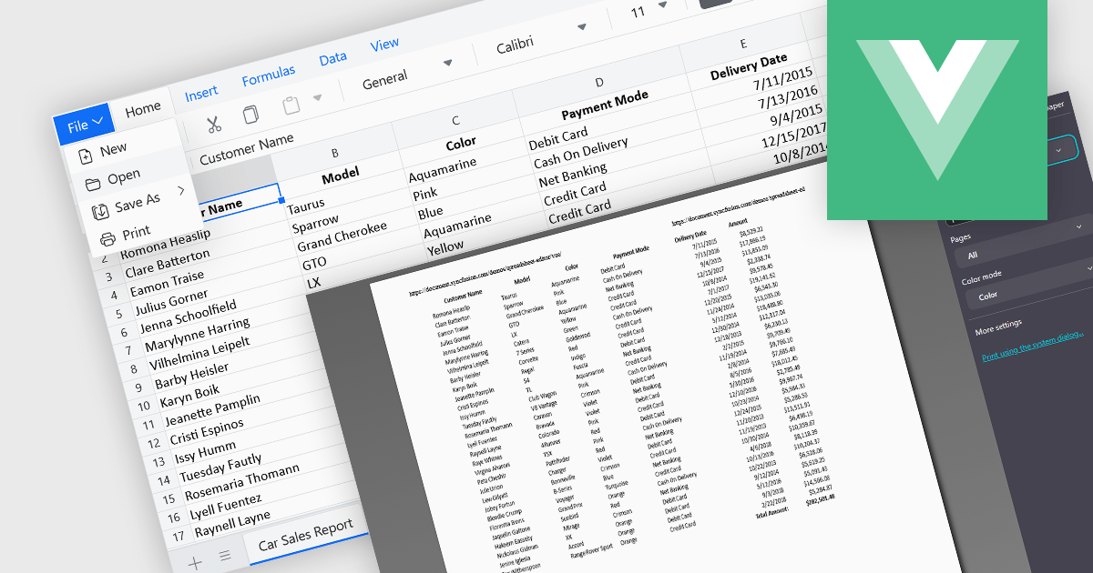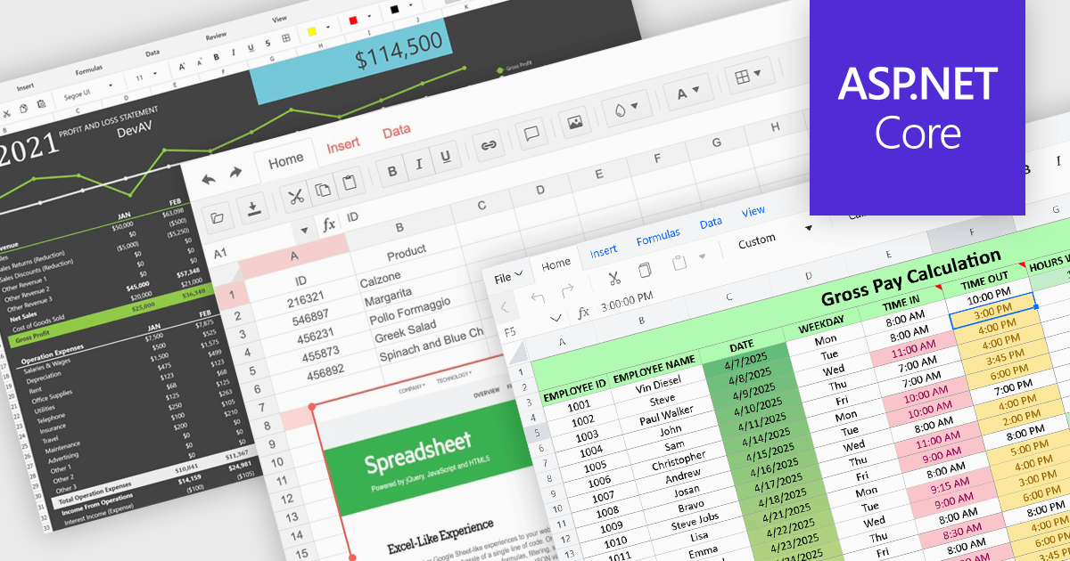 Spread.NET helps you create spreadsheets, grids, dashboards, and forms. It includes a powerful calculation engine with 450+ functions and the ability to import and export Excel spreadsheets. You can develop in Visual Studio using VB or C# for WinForms, ASP.NET, and WPF.
