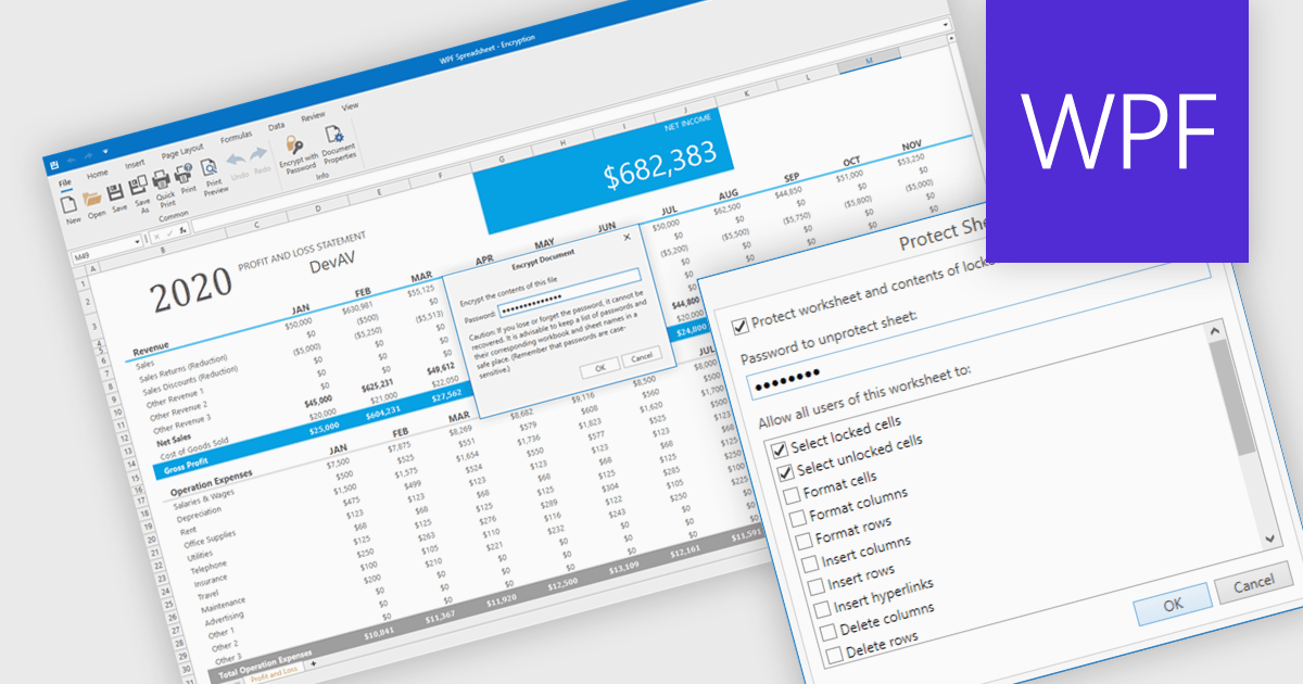 Several WPF spreadsheet components offer security features, including: