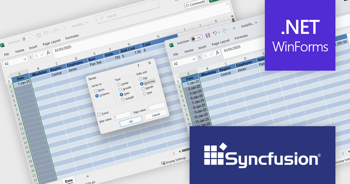 The Syncfusion Essential Studio Windows Forms 2025 Volume 2 update introduces Auto Fill and Fill Series support in the Excel Library, enabling developers to programmatically populate cell ranges based on detected patterns, sequences, or trends. This enhancement improves spreadsheet generation by reducing manual data entry and allows for efficient creation of structured data such as incremental numbers, dates, or custom-defined sequences. It improves automation in Excel-based workflows, supports consistent data output, and integrates smoothly into existing .NET applications for more dynamic and intelligent document processing.